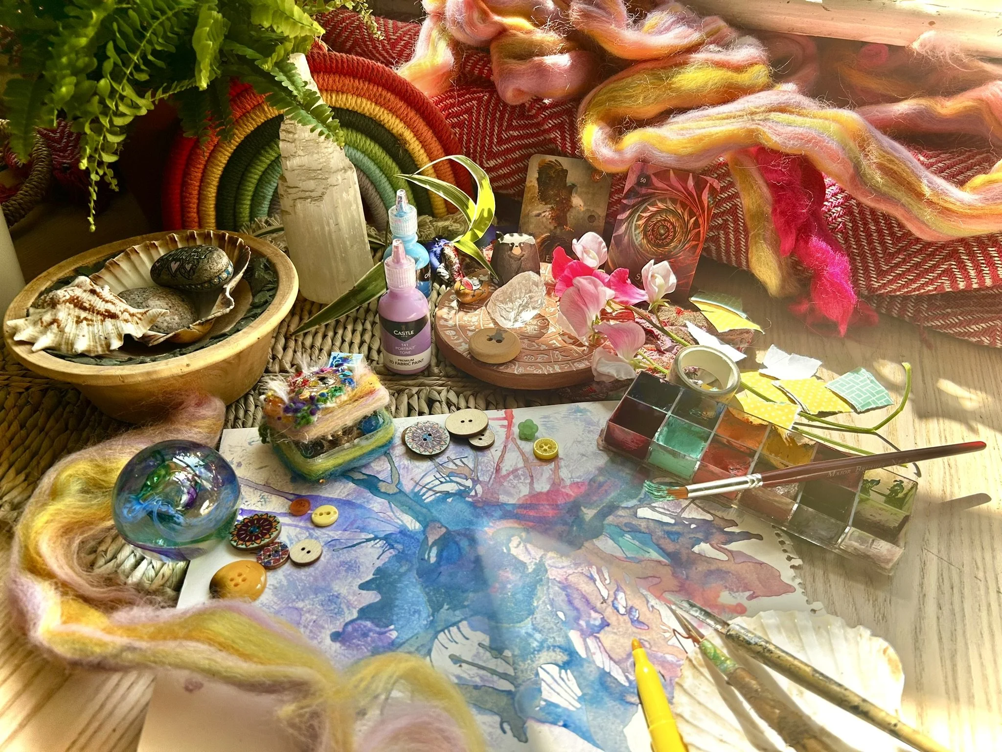 These sessions offer a gentle and imaginative space to explore the layers of your inner world through art-making. Rooted in curiosity rather than perfection, each session invites you to follow the creative process wherever it leads — through colour, texture, image, and emotion. Using sketchbooks and mixed media, we reflect on dreams, memories, life events and symbols that surface along the way. There is no pressure to ‘get it right’ — only to stay open to what emerges.
