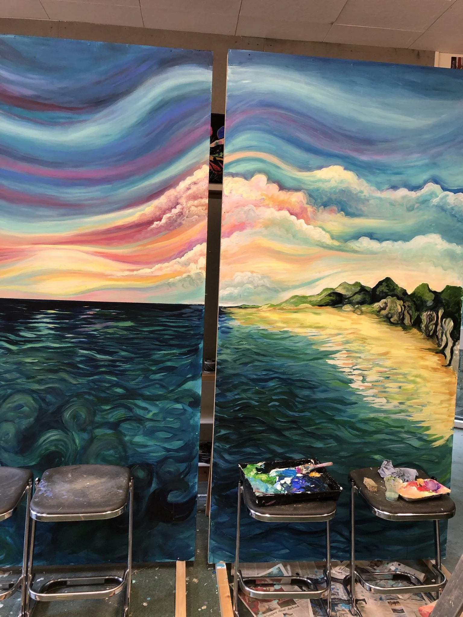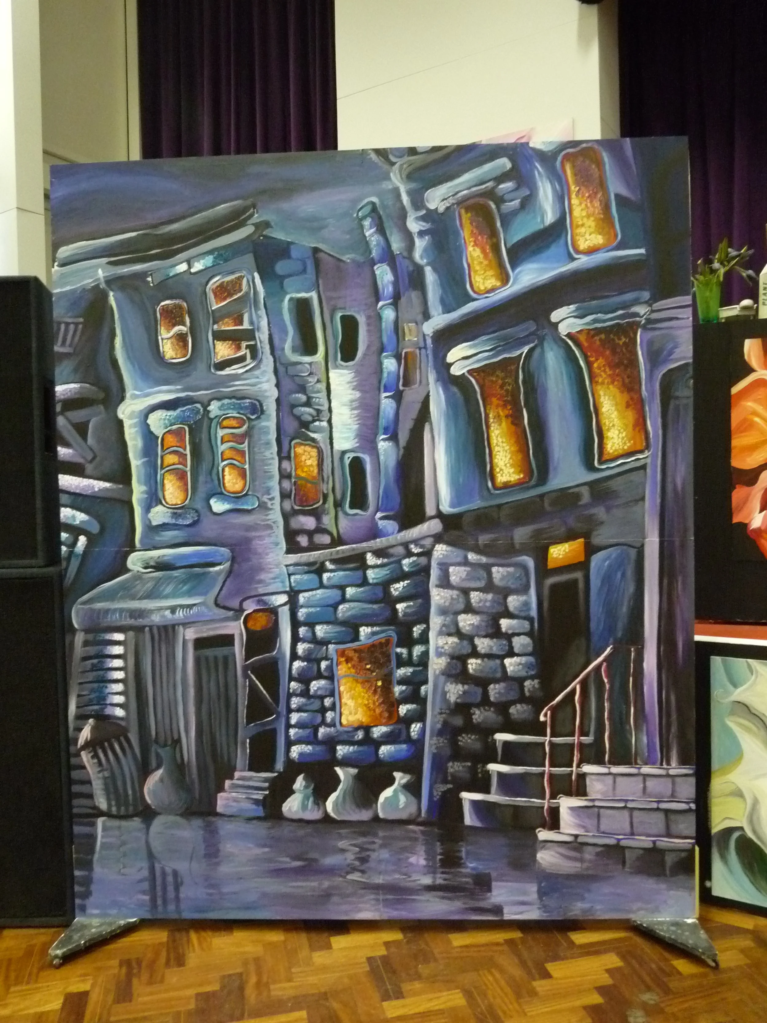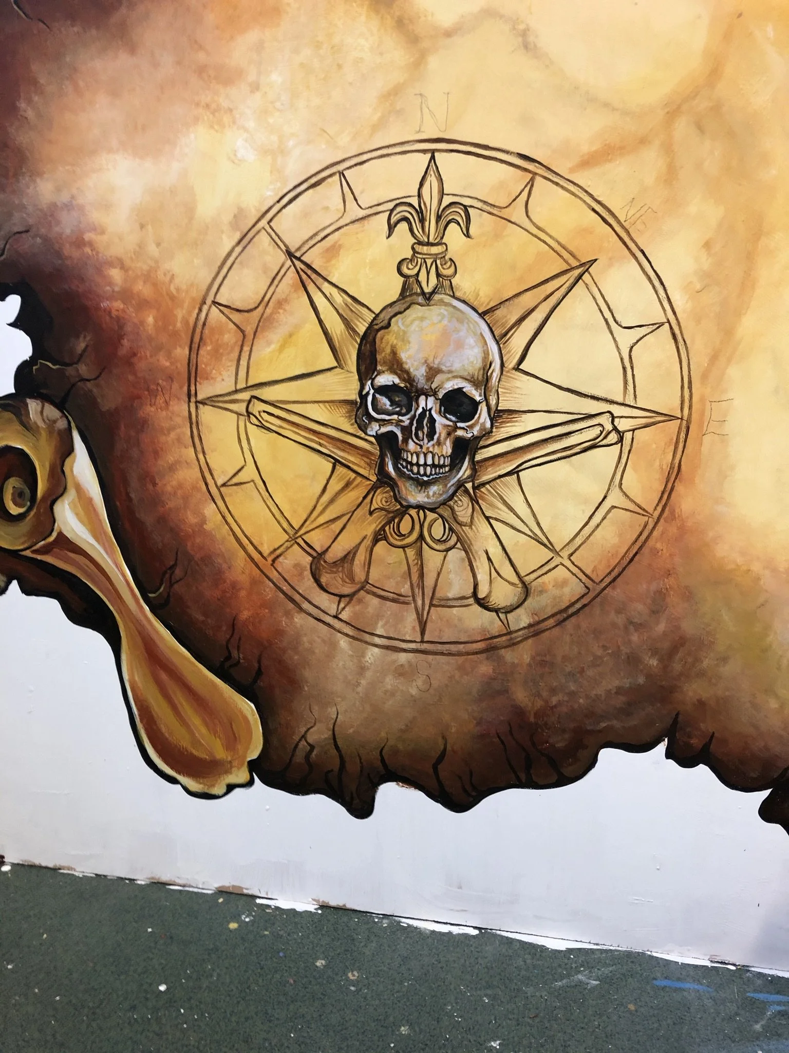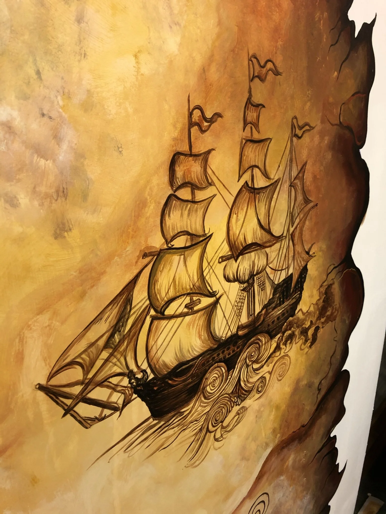 My murals are colourful, layered, story-rich spaces. Whether created for a child’s bedroom, a school corridor, a theatre set or a visitor centre wall, each piece is shaped by its setting and purpose. I work in acrylics and light-relief techniques to create visual impact, often incorporating fluorescent colours, glitter, and gold leaf to add a sense of enchantment. These shimmering materials reflect not only light, but the vibrance and electricity of musical drama, evoking movement, rhythm and emotion. Inspirations vary from the soft hues of the Yorkshire Dales to ancient Egypt, historical narratives and theatrical worlds. I often blend the real with the imagined, mixing rustic found objects with sculpted textures to form poetic storyscapes. Hidden animals or interactive details invite visitors to search, to touch, and to step into a world of curious juxtapositions where scale shifts, stories unravel, and the walls feel sprinkled with sherbet for the fun and lace for the detail. A little Wonderland waiting to be wandered through.